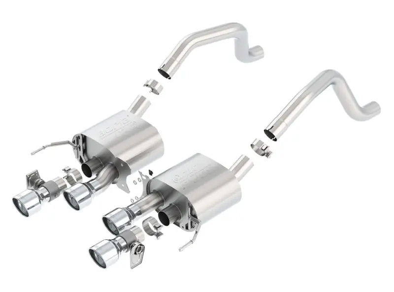 • This Axle-Back system doe NOT have AFM valves but is equipped with NPP valves. This system features the aggressive ATAK(r) sound and exits through 4.25″ polished T-304 stainless steel tips. Borla(r) Cat-Back(tm) & Axle-Back exhaust systems feature patented straight-through and multi-core technology to unleash hidden horsepower. Increased exhaust velocity adds power, driving excitement, fuel economy, and the distinctive Borla(r) Sound of Power respected by motoring enthusiasts everywhere. Each system is built from premium T-304 austenitic stainless steel, superior to T-400 series knockoffs (such as 409), to give you the absolute best in performance and durability. Ultra-smooth mandrel bends ensure maximum flow & power, and precision computer numerical control (CNC) manufacturing ensures an accurate fit. Borla(r)’s C7 Corvette Axle-Back exhaust systems are covered under our Million-Mile Warranty for non-moving parts, the exhaust valves are warrantied for 1 year. Failures of original equipment AFM and NPP actuators are not covered by the Borla(r) warranty