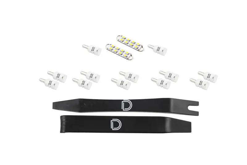 FeaturesAdd a modern, cool white appearance. Increased output with LED bulbs. Includes LED replacements for all interior incandescent bulbs. Plug-and-play, simple installation.Overview Increase your light output and add a modern appearance to your vehicle with our Interior LED Conversion Kit compatible with Chevrolet Silverado! Factory interior lighting leaves much to be desired with a dated appearance and lackluster performance. By replacing your outdated halogen bulbs with LEDs, you’ll give your vehicle a more modern appearance, and significantly increase the output of your interior lighting. Modern Appearance. The LED bulbs included in this kit feature a 6000K true cool white output without any blue – just like factory installed LEDs. This provides a serious upgrade in the overall appearance of your interior when compared to the factory halogen bulbs. All Diode Dynamics LED bulbs are tested in-house, so you know you’re getting consistent performance. Brightness. This kit is available in two levels of brightness, Stage 1 and Stage 2. Stage 1 gives your interior an ultra-modern appearance, while providing a slight increase in output compared to your factory lighting. Stage 2 steps things up with a significant increase in overall light output throughout the interior. Plug-and-Play. The LED bulbs included in this kit feature plug-and-play connections for simple installation. Our bulbs are not constructed with cheap connectors, so you don’t have to worry about them coming loose and falling out. Simply remove your factory bulbs and these will fit right in place! Two plastic trim removal tools are included to assist with installation. If any bulb does not light up when you turn it on, simply remove the bulb, rotate it 180 degrees and reinstall.