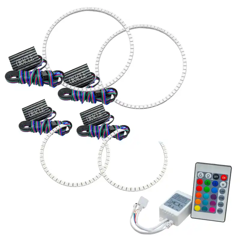 The ColorSHIFT(tm) Halo Kit can produce any color including whites from 3000K-15000K with the push of a button. This allows the user to dial-in the exact color rings that they desire. These 3-Chip 5050 SMD rings are BRIGHT, and for some they may be too bright, that is why (for the first time) the user has full control over the ring brightness. ORACLE SMD or “Surface Mount Diode” Halos utilize an advanced type of LED chip that can produce brilliant light output while only consuming a small amount of power. The SMD chips are installed onto a CAD designed 6-layer PCB (Printed Circuit Board) which is very sturdy and will not break if pressured. The PCB can easily be mounted to a headlight housing using the pre-installed 3M adhesive tape backing.
