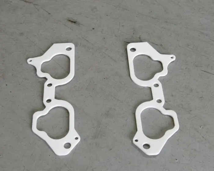 The white UHMW material gaskets are good up to 275 degrees Fahrenheit. Unlike the competition, the gasket will not melt or leak under high horsepower applications. The high quality material dissipates heat between the engine and intake manifold. These are much more durable to this application then Teflon or standard gasket material. The gaskets are .14 inches (3.58mm) thick all the way around. These gaskets can be used on all Subaru WRX or STI vehicles from 2002 and up. They fit on the 2.0L and 2.5L as well as modified engines including 2.2L, 2.3L, 2.4L and more. These gaskets have a 90 day warranty against manufacturer defects as well as failure due to heat.