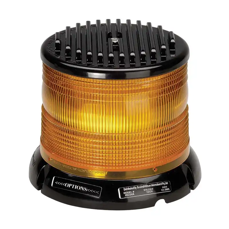 Megaburst High Output L.E.D Strobe Light (Amber), 5 Selectable Flash Patterns, 12/24V. Ideal for industrial and mining environments. Features: Flange base, polycarbonate lens with aluminium heat sink to allow maximum brightness andperformance