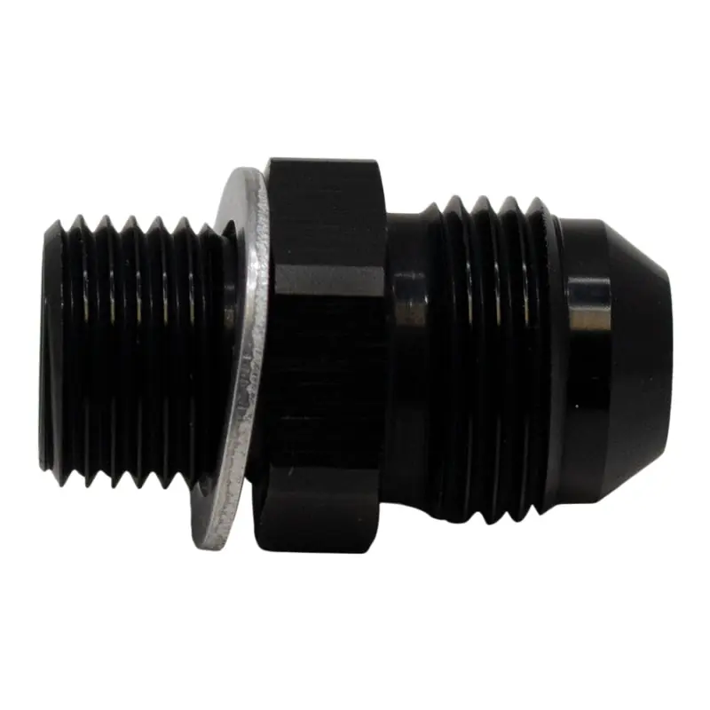 - DeatschWerks 8AN Male Flare to M16 X 1.5 Male Metric Adapter (Incl Washer) – Anodized Matte Black