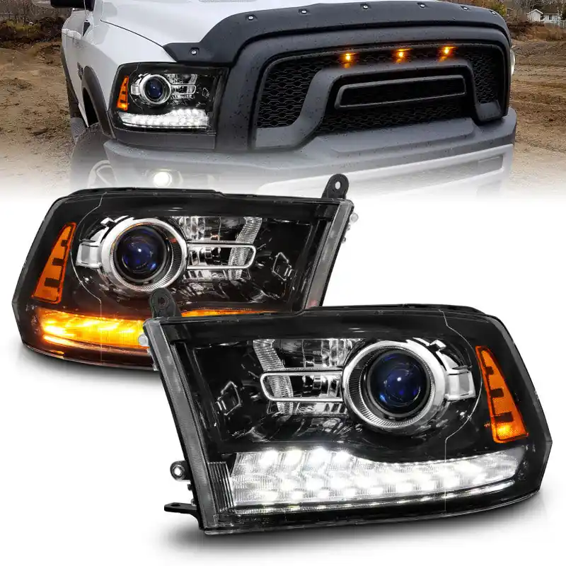 Hot Deal ANZO 09-18 Dodge 1500-3500 LED Plank Style Headlights w/Switchback+Sequential Hyper Black (OE Style)