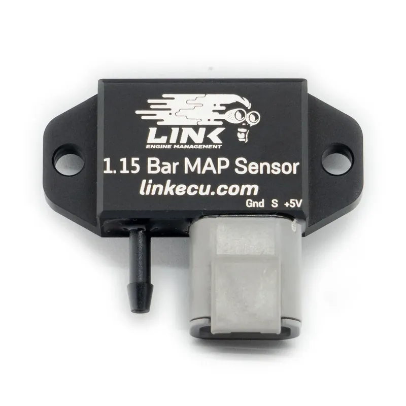 What accessories are required to maximise your Link ECU? We sell a variety of sensors and extras which complement aftermarket ECUs. The Link 1.15 Bar MAP sensor reads up to 1.15 Bar absolute pressure. This means it is suitable for use in naturally aspirated engines. This MAP sensor can also be used in applications where positive intake pressures of up to 0.15 Bar (approx 2 PSI) are expected (eg. Ram-air effect). The wiring pinout for this sensor is marked directly on the housing.