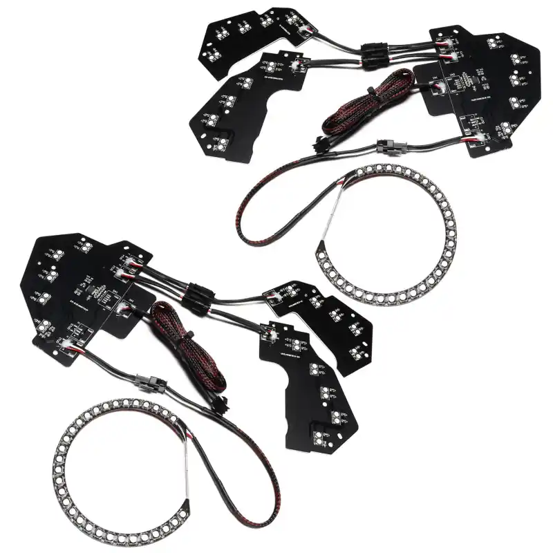 The 2018-2023 Ford Mustang Dynamic ColorSHIFT(tm) Halo Kit with DRL Upgrade from ORACLE Lighting packs a ton of innovative features. These RGB headlights for 2018-2023 Mustangs have unique options such as Sequential FLOW Turn Signals, white DRL mode, and smartphone control all in one package! Dynamic ColorSHIFT(tm) features individually addressable LEDs which pack a ton of unique features. The Dynamic features allow the user to run multiple moving color patterns through the LEDs, creating a vivid eye-catching lighting effect. The color-changing motion flow effects are conveniently controlled through a free smartphone app, and the system features over 200 pre-programmed moving patterns as well as static color control and color wheel. The integrated controller features both DRL and turn indicator inputs. The switchback LED indicator features our exclusive Dynamic FLOW turn signal effect. The white DRL trigger automatically switches the LEDs to pure white when you start the vehicle (connect DRL trigger to ignition switched source). Professional installation recommended with our premium silicone sealant. White and amber are considered on-road legal colors. Other colors not intended for on-road use, please verify your state and local driving laws.
