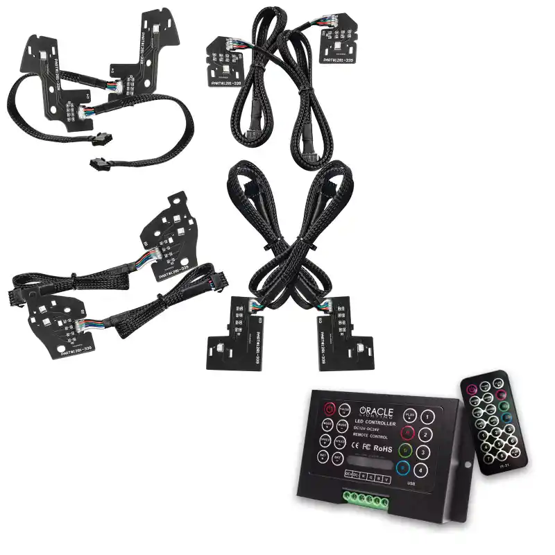 Introducing the RAM ColorSHIFT(tm) RGB+W Headlight DRL Upgrade from ORACLE Lighting! Featuring our new high-performance RGB+W chips, this new kit allows you to utilize the existing DRL feature on your RAM LED Headlights and easily convert it to Color-Changing DRLs while maintaining a true White replacement boards feature our traditional RGB ColorSHIFT(tm) technology along with an extra “White LED” which allows for truer white tones, a crisp white DRL color option and the ability to instantly switch over for 100% legal road driving. These boards can make hundreds of different colors, dozens of patterns, control the brightness, and even the speed of the functions as well! Give your RAM the attitude adjustment and stand out from the crowd with the new ORACLE Lighting ColorSHIFT(tm) RGB+W DRL Replacement Kit! Fitment:- RAM Laramie- RAM Rebel- RAM Big Horn (with LED Premium Package Upgrade)