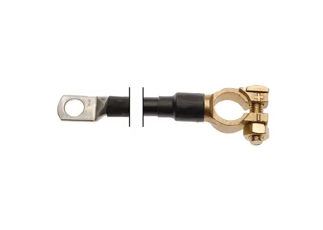 Universal brass battery terminalTin-plated copper lug to suit 10mm (3/8”) studAnnealed copper cable with PVC insulationDurable polyolefin heat shrink for lasting protectionMechanically crimped to ensure a solid permanent connection