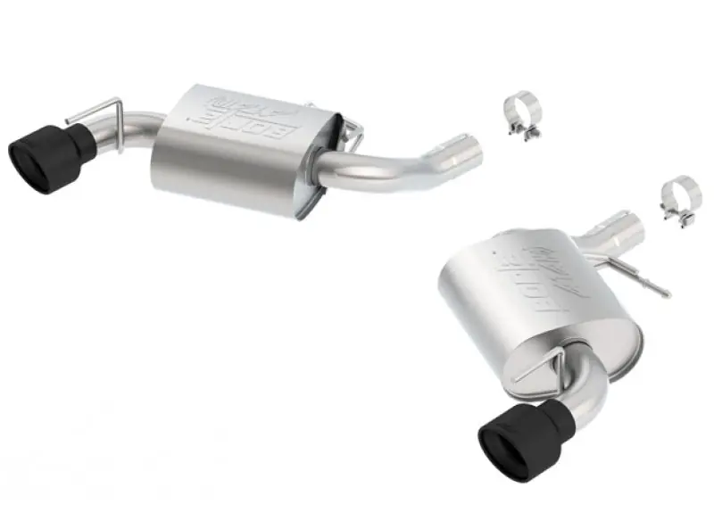 This system features the aggressive ATAK(r) sound with no drone inside the vehicle. The 2.75″ diameter system is designed for vehicles that come from the factory with single tips and are NOT with Dual Mode Exhaust (NPP) valves. By adding Borla(r) X-Pipe with Mid-Pipes part number 60607 (WITHOUT AFM Valves), or 60610 (With AFM Valves) you can create a Cat-Back(tm) system for your Camaro SS Coupe. The X-Pipes with Mid-Pipes do NOT fit Convertibles. It features a durable high temperature black finish on single 4.5″ round T-304 stainless steel tips on each muffler assembly. Systems with polished T-304 stainless steel tips, and carbon fiber tips are also available. Systems with bright chrome on T-304 stainless steel tips and carbon fiber tips are also available. Borla(r) Cat-Back(tm) & Axle-Back exhaust systems feature patented straight-through and multi-core technology to unleash hidden horsepower. Increased exhaust velocity adds power, driving excitement, fuel economy, and the distinctive Borla(r) Sound of Power respected by motoring enthusiasts everywhere. Each system is built from premium T-304 austenitic stainless steel, superior to T-400 series knockoffs (such as 409), to give you the absolute best in performance and durability. Ultra-smooth mandrel bends ensure maximum flow & power, and precision computer numerical control (CNC) manufacturing ensures an accurate fit. Best of all, Borla(r) stands behind every system with a Million-Mile Warranty. Just what you’d expect from the world’s most experienced (and most winning) exhaust brand.