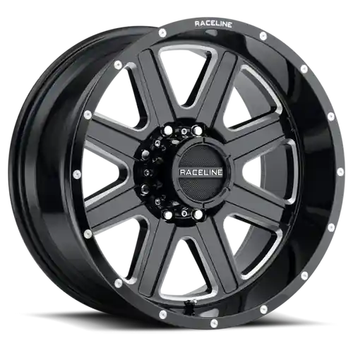 Shop Now Raceline 940M Hostage 20x9in / 8×180 BP / 12mm Offset / 124.2mm Bore – Black & Milled Wheel