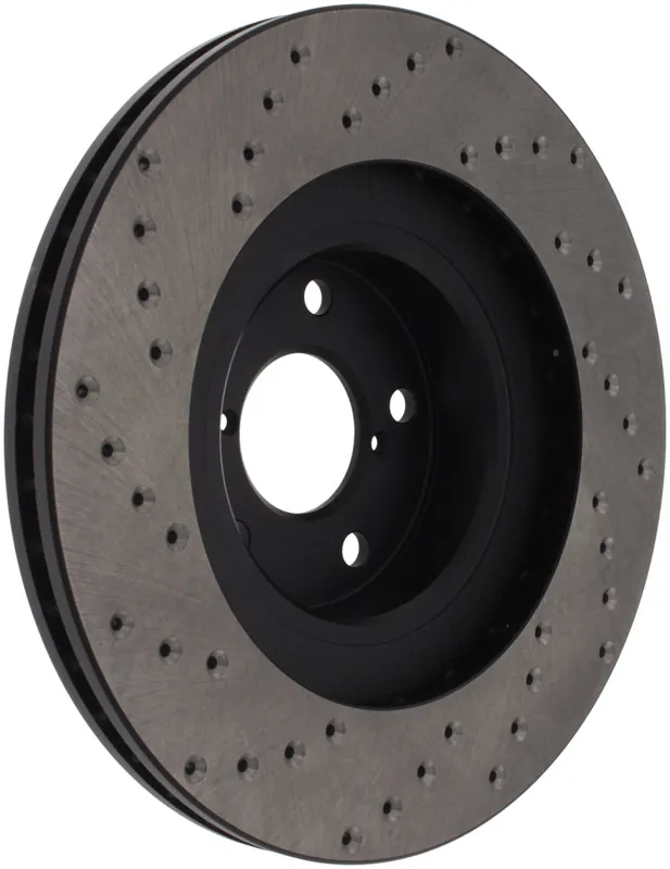 StopTech Drilled Sport Rotors are 1-piece direct replacement brake discs for factory brake systems and stock calipers that look great behind your wheels – and offer significantly improved braking performance. The unique cross-drilling aids with heat and brake dust dispersal; prevents glazing of the pads; adds bite and improves wet and dry braking performance. Built to last; the black e-coating provides protection from corrosion and the high carbon metallurgy (in most applications) offers quieter operation; better crack resistance and increased performance.